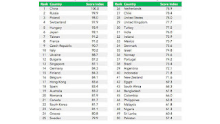 Os Estados Unidos aparecem no ranking em 28º, atrás da Alemanha, da Coreia do Sul e do nosso vizinho Chile.